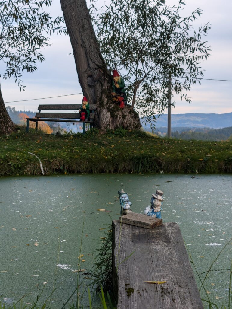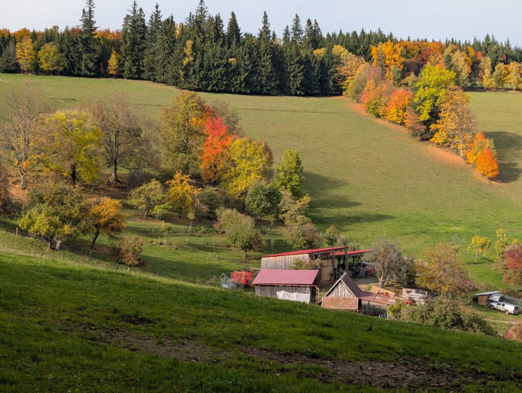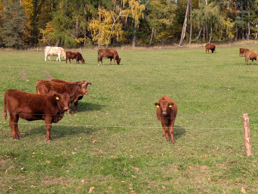 Tato část je i nejzáživnější. Pro nás tedy určitě. Cestu lemují jabloně, o lahodnou svačinku je tudíž postaráno. Procházíme mezi pastvinami a láká nás kontakt s pasoucími se kravami. Tím víc, že je mezi nimi několik mladých. Chceme jim hodit nějaká jablíčka, nicméně zrovna tady zrovna nejsou žádná v utržitelné výšce. Táta pomáhá Kačce vylézt na strom, což se přes obrovské úsilí a obrovskou oběť v podobě otcovy důstojnosti dlouho nedaří. Krávy nás se zatajeným dechem pozorují, drží nám paznehty a samým napětím přestávají žvýkat. Kačenka v záchvatech smíchu ale není schopná těch pár centimetrů zdolat a na strom se nedostává. Neúspěch. Takový je život. Pár jablek tedy setřeseme a hodíme je kravám, které stojí stále jako opařené a dopad jablíčka v jejich blízkosti nezpůsobí ani nejmenší reakci. I ta nejmenší na nás stále čumí jako tele.
